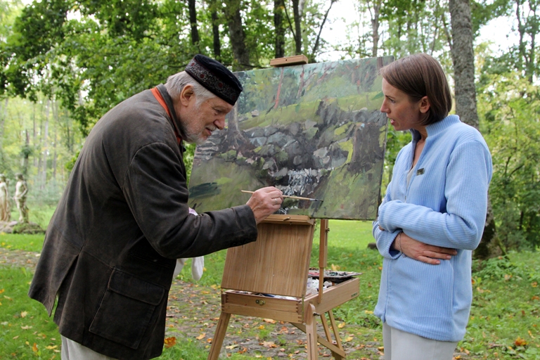 Terasoje sėdi Mileris ir slaugytoja Abeka.