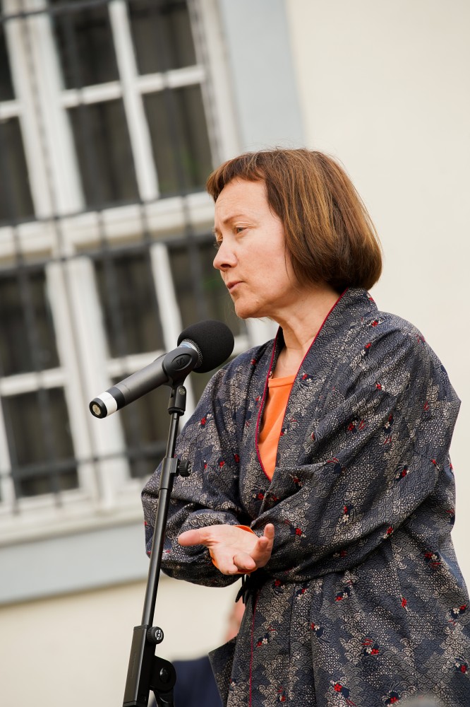 Giedrė Beinoriūtė: Aš gal du dalykus pasakysiu. Vieni kalba apie temas, tai aš dar priminčiaus saviraišką. Man labai patinka, kaip Tu, Rasa, mėgsti studentams cituoti: „renkite ekskursijas į gyvenimą“ (Juozo Miltinio žodžiai Algirdo Dausos dokumentiniame filme, ‚Lauke, už durų“ – R. P.). Tai šalia saviraiškos siūlyčiau nepamiršti ekskursijų į gyvenimą. Nežinau, ar čia karantino įtaka, bet labai džiaugiuosi jus visus matydama, taip smagu kalbėtis, bendrauti. Ir noriu palinkėti kuo daugiau tokių susitikimų, progų, vakarėlių, pasikeitimų nuomonėmis, ginčų...