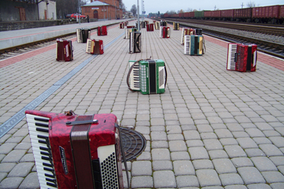 nebent komiška – kai Broniaus ir Birutės propelerio motoras gęsta. Užtat muzikalumo daugėja. Akordeonistus filmų kūrėjai randa vis dažniau: pievoje, balkone, ties bėgiais. Tai jau ne štrichai miestelio portretui, o atkaklus ir atvirai organizuotas leitmotyvas. Kai akordeono mokytoja diriguoja būriui savo mokinių perone, gali tokį epizodą sutraktuoti kaip manieringus laikraščio sakinius, kuriuos girdėjai skaitant per vietos radiją. Bet kai filmo finale gausybė muzikantų su akordeonais renkasi į tą patį peroną ir groja tą patį, visą valandą repetuotą motyvą, drįsti suvokti šią sceną beveik kaip requiem.