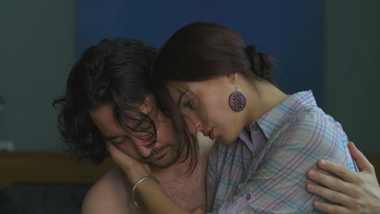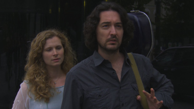 Pasirodo oro uosto darbuotojai. Jie abu atsistoja ir eina iki vartų. Jie apsikabina.