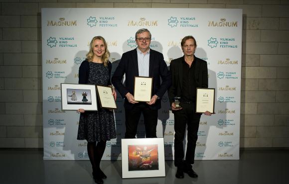 Padėkos diplomą ir M. Vilučio darbą AKA narė prodiuserė Ieva Norvilienė įteikė LRT generaliniam direktoriui Audriui Siaurusevičiui - už šalies kino režisierių kūrybos rėmimą, už nacionalinio kino sklaidą.