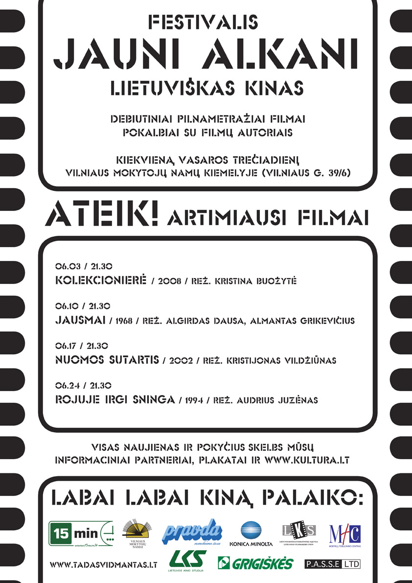 Trečiadienį, birželio 3 dieną 21 val. 30 min. Mokytojų namų kiemelyje (Vilniaus g. 39/6) prasideda kiekvieną vasaros trečiadienio vakarą kino mėgėjų ir profesionalų lauksiantis vasariškas lietuviškų pilnametražių debiutinių filmų festivalis „Jauni. Alkani“. Festivalio žiūrovai ne tik turės galimybę pamatyti skirtingų Lietuvos kino kartų kūrybą, bet ir išgirsti, ką apie savo pirmuosius didžiuosius filmus mano patys kūrėjai.
