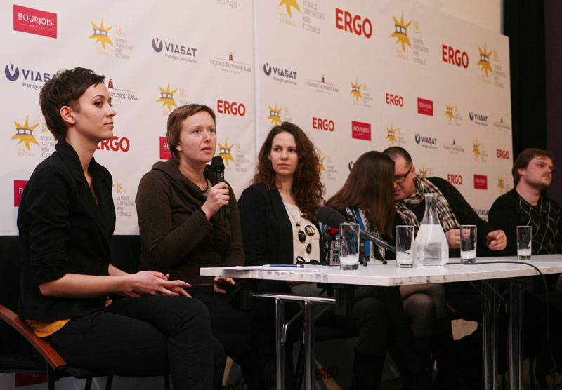 Spaudos konferencijoje kalba režisieriai Giedrė Beinoriūtė, Mindaugas Urbonavičius, Inesa Kurklietytė, Linas Mikuta.